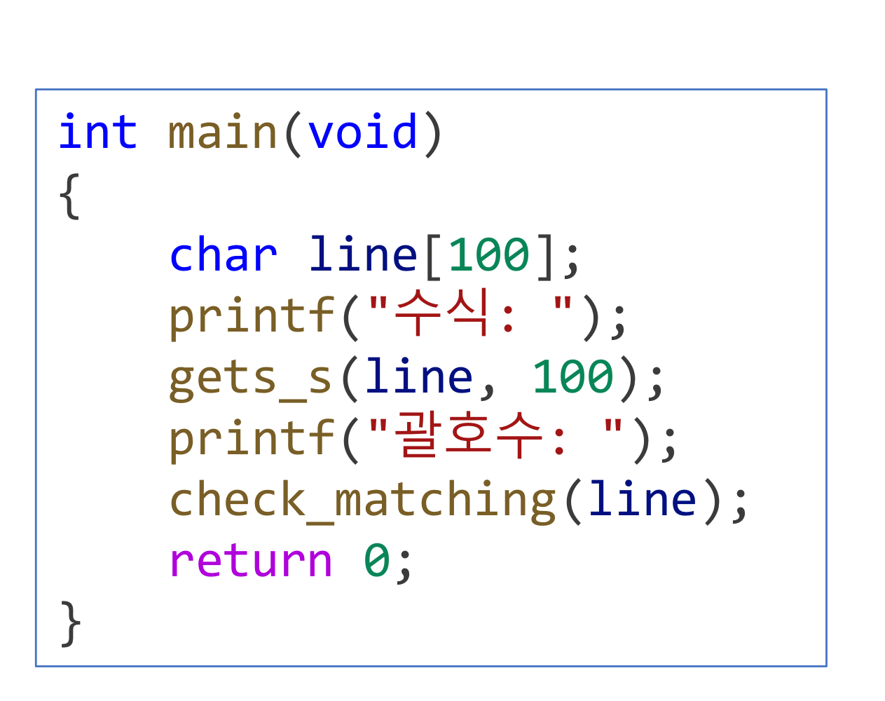 printf("%s 괄호검사실패\n", p);
