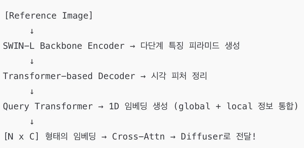 | 3. SeeCoder 시각 정보 | 참조 인물 이미지로부터 시각 임베딩 추출 |